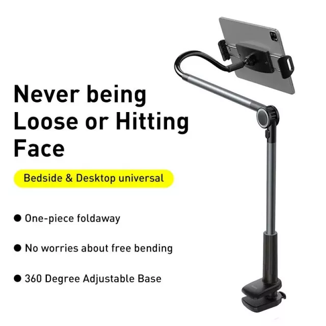 This holder combines a flexible hose with a double-section alloy core for outstanding stability, giving your phone or tablet firm, secure support. The strong extension clamp stays locked in place, so you never have to worry about your device falling or hitting your face during use. With 360° rotation and 180° vertical adjustment, you can shift between portrait and landscape or raise and lower the viewing angle with a single hand. Compatible with devices from 4.7 to 12.9 inches, it fits most modern phones and tablets effortlessly.