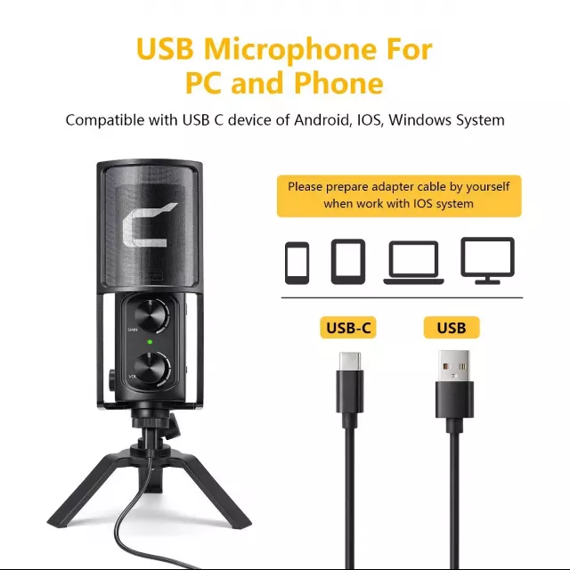 Upgrade your voice with a high-quality USB condenser microphone designed to deliver crisp, rich and professional sound. Whether you’re streaming, recording vocals, hosting virtual meetings or creating content, this desktop microphone gives you the clarity and control you need. Its cardioid pickup pattern focuses solely on your voice, reducing unwanted background noise so every word sounds clean and natural.
